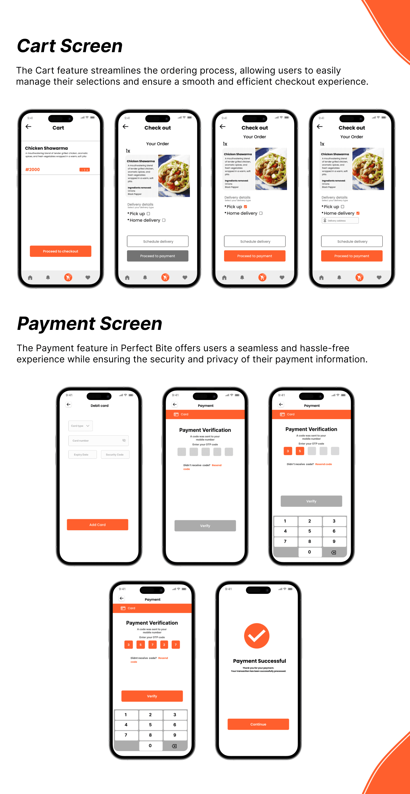 This flowchart outlines the primary user journey in Perfect Bite app, guiding users from browsing the menu to placing an order and managing their account.